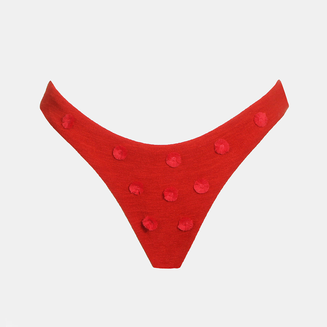 - A Calcinha Marina é uma calcinha inteira, de cobertura média, finalizada com nossos clássicos pompons, bordados um a um à mão, é uma calcinha extremamente confortável
